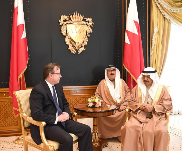 Bahrain Mirror: Prime Minister Khalifa bin Salman Al Khalifa received at Gudaibiya Palace the US Ambassador to Bahrain Justin Siberell.