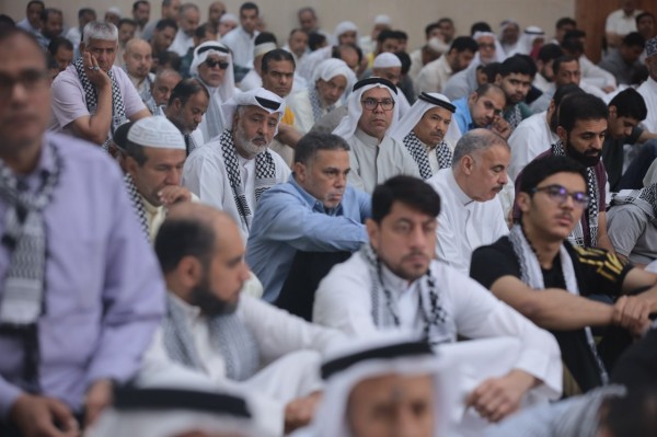 Sheikh Ali Al-Sadadi, Imam of the Friday prayer of Imam Al-Sadiq Mosque, led the crowds of worshipers (April 14, 2023) wearing the Palestinian keffiyeh, during the International Quds Day, which falls on the last Friday of Ramadan.