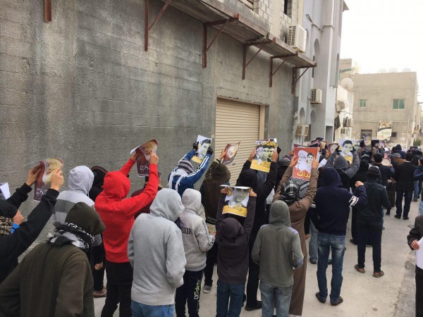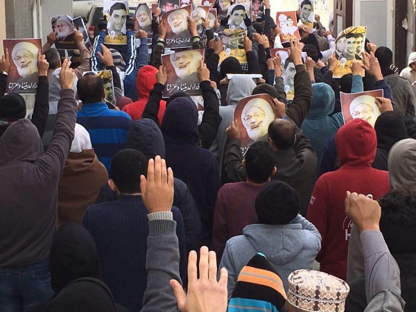 ورفع المتظاهرون صورا للشيخ قاسم والمصاب مصطفى حمدان (18 عاما) الذي أصيب بطلق ناري في رأسه عندما هاجمت قوات تابعة للحكومة ساحة الاعتصام (26 يناير/ كانون الثاني 2017)، كما رفعوا صورا لـ 3 شبان (علي السنكيس، عباس السميع وسامي مشيمع) أعدمتهم السلطات 15 يناير/ كانون الثاني.