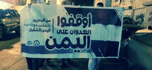 وتشارك الحكومة البحرينية في الحرب إلى جانب السعودية التي تدعم المنامة في وجه حراك شعبي يطالب بإنهاء استحواذ عائلة آل خليفة على السلطة.