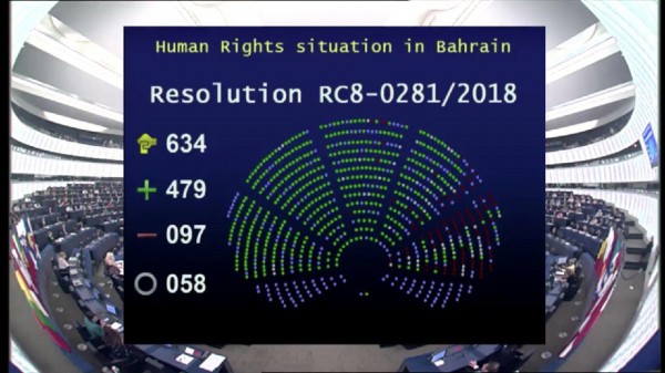 وأبدى البرلمان الأوروبي موقفًا قويًا هو الأبرز دوليا منذ تصاعد موجة القمع ضد المعارضة في البحرين قبل عامين.