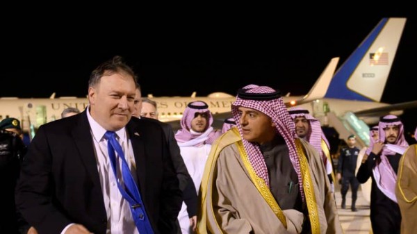 وقال صحفيون مسافرون مع بومبيو إن الوزير الأمريكي اجتمع مع الجبير والأمير خالد لمدة ساعة وقالت وزارة الخارجية الأمريكية في بيان إنهم ناقشوا التوترات مع إيران والصراعات في سوريا واليمن وليبيا وأفغانستان وقضية خاشقجي.