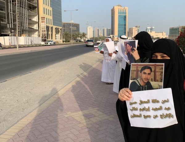 المتظاهرون اصطفوا على جانبي طرق رئيسية غرب وجنوب العاصمة المنامة ورفعوا لافتات تدعو السلطات للإفراج عن المعتقلين.