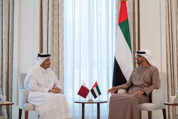 ولي عهد أبوظبي محمد بن زايد يستقبل وزير الخارجية القطري مع تحسن العلاقات بين البلدين
