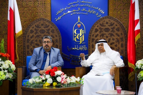 صورة أرشيفية تجمع رئيس الأوقاف الجعفرية يوسف الصالح مع مديرها محمد جعفر الحسيني