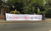 بث نشطاء في وسائل التواصل الاجتماعي صوراً عن اعتصام لنشطاء في بريطانيا، احتجاجاً على زيارة ملك البحرين للمملكة المتحدة.