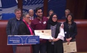 آدم وملك رجب يستلمان من المجلس الأوروبي ديبلومًا نيابة عن والدهما تقديرًا لنضاله من أجل حقوق الإنسان