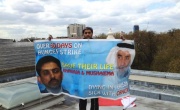 صورتا الخواجة ومشيمع على مبنى سفارة البحرين في لندن