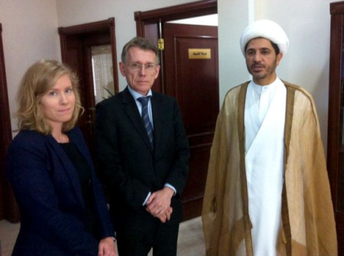 مرآة البحرين: بحث الأمين العام لجمعية "الوفاق" الشيخ علي سلمان مع السفير السويدي في أبوظبي ماكس بجور والدبلوماسية في وزارة الخارجية السويدية جوسفيني هلكرن الأوضاع السياسية في البحرين.