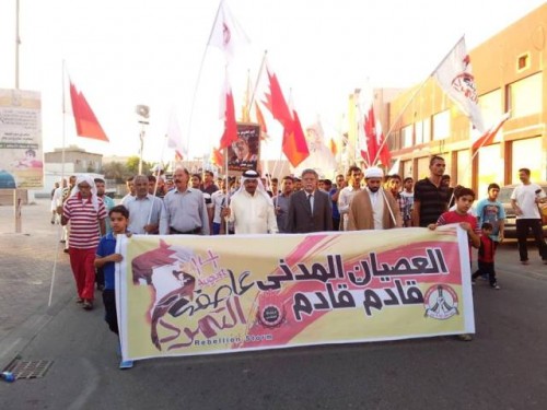 ودعت "تمرد"، في بيان، "أبناء الشعب البحريني كافة من النساء والرجال والصغار والكبار إلى المشاركة في النفير العام، والانخراط في حراك التمرد المدني في البحرين بكل سلمية".