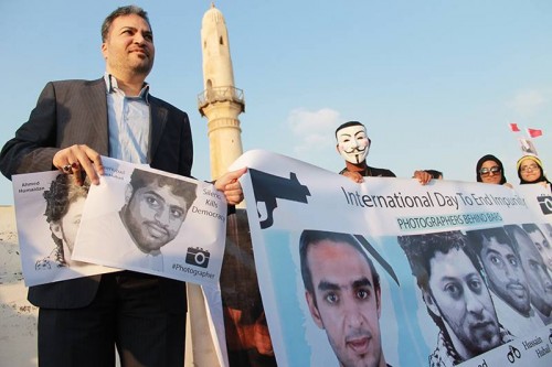 وخصت المنظمة بالذكر سبعة إعلاميين يتعرضون حاليا لمحاكمات ويتم اعتقالهم، هم المصور حسن معتوق، المدون الدكتور عبدالجليل السنكيس، والمصور أحمد حميدان والناشط الإلكتروني حسين حبيل، المدون جاسم النعيمي، المصور قاسم زين الدين والمصور عبد الله سلمان الجردابي.