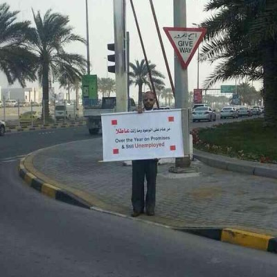 مرآة البحرين: اعتقلت السلطات البحرينية مواطناً اعتصم اليوم في الحي المالي بالعاصمة المنامة احتجاجاً على عطالته عن العمل. ورفع المواطن حسين البوري لافتة أمام «المرفأ المالي» المملوك إلى رئيس الوزراء البحريني كتب عليها «مر عام على الوعود ولا زلت عاطلاً» قبل أن تعتقله قوّة من الشرطة. لكن رئيس المنظمة الأوروبية البحرينية لحقوق الإنسان، حسين جواد، أكد الإفراج عن البوري لاحقاً اليوم. وتمنع السلطات الاعتصامات والمسيرات في العاصمة المنامة منذ العام 2011.