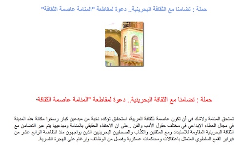 مثقفون عرب وبحرينيون يطلقون عريضة لمقاطعة "البحرين عاصمة للثقافة العربية 2012"