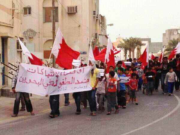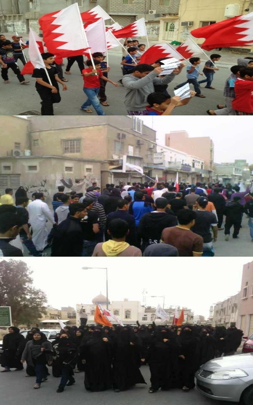 قوات الأمن تقمع بمرافقة مدرعتين مسيرة ضخمة جابت السنابس تنديداً بالاعتداء على طفل