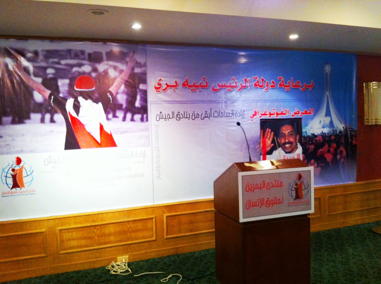مرآة البحرين: أقام "منتدى البحرين لحقوق الإنسان" الإثنين والثلاثاء معرض صور في بيروت تحت عنوان "إرادة الساحات أبقى من بنادق الجيش"، برعاية رئيس مجلس النواب اللبناني نبيه بري بحضور شخصيات إعلامية وسياسية، وذلك للإضاءة على إنتهاكات السلطات البحرينية ضد المتظاهرين السلميين.