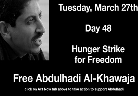 مرآة البحرين: أبدت اتحادات وجمعيات في "الصحراء الغربية" قلقها الشديد على حياة المدافع البحريني عن حقوق الإنسان، عبد الهادي الخواجة، الذي دخل يومه ال49 من الإضراب المفتوح عن الطعام، الذي رفع شعار "الحرية أو الشهادة"، حسبما أفاد موقع اتحاد الصحفيين والكتاب الصحراويين.
