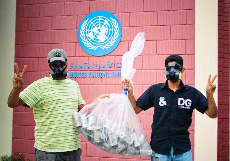 وتجمع الآلاف من المحتجين أمام مبنى الأمم المتحدة، وهم يرتدون الكمامات ويلوحون بعبوات الطلقات التي تلقيها قوات الأمن بشكل يومي على القرى المعارضة وسط الأحياء الآهلة.