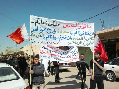 وقال مستشار رئيس الجمهورية لشؤون العشائر ورئيس حركة الجهاد والبناء، داغر الموسوي، إن التظاهرة "تأتي تاييداً لأبناء الشعب البحريني الشقيق في جهاده ضد النظام الذي استلب حقوقه وحريته".
