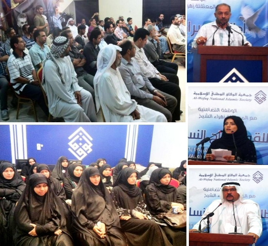 مرآة البحرين: نظمت جمعية الوفاق الوطني وقفة تضامنية مع المعتقلة "زهراء الشيخ"، وذلك بمقر الجمعية في الزنج مساء يوم أمس.