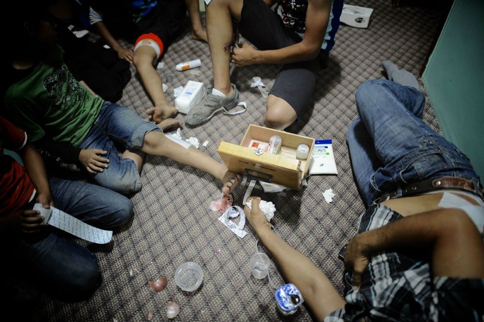 ونقلت الصحيفة عن الطبيب محمد، وهو أحد العاملين في شبكة أطباء توفر العناية اللازمة للجرحى في غرف تحت الأرض، قوله إن الحكومة تستخدم سلاح "الشوزن" (بندقية صيد محرمة دولياً) لتفريق المتظاهرين، مضيفاً "يلجأ الجرحى إلينا مهما بلغت خطورة إصابتهم... عالجنا الكثير من الحالات الخطيرة مثل بتر أعضاء الجسم".