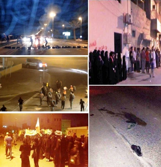 هذا وقد عمت التظاهرات والمسيرات الاحتجاجية ليلاً في عدة مناطق في البحرين وامتدت حتى ساعات الصباح الأولى، ومن بين هذه المناطق الدراز، كرزكان، النبيه صالح، الدير، سماهيج، أبو قوة، المالكية دار كليب، الهملة، جدحفص، المصلى، المعامير، العكر، السنابس، السهلة، أبوصيبع، الشاخورة، والمرخ. وفي سترة خرجت مسيرة دعا إليها تيار الوفاء الإسلامي تحت عنوان "مَاضُونْ فِي إسْقَاطَ النِظَام المَلَكِيّ الفَاسِد"، وشهدت مشاركة نسائية حاشدة، بينما نظّمت في أبوقوة وقفة تضامنية مع ضحايا التعذيب ومع الشاب الجامعي محمد عبدالمهدي.