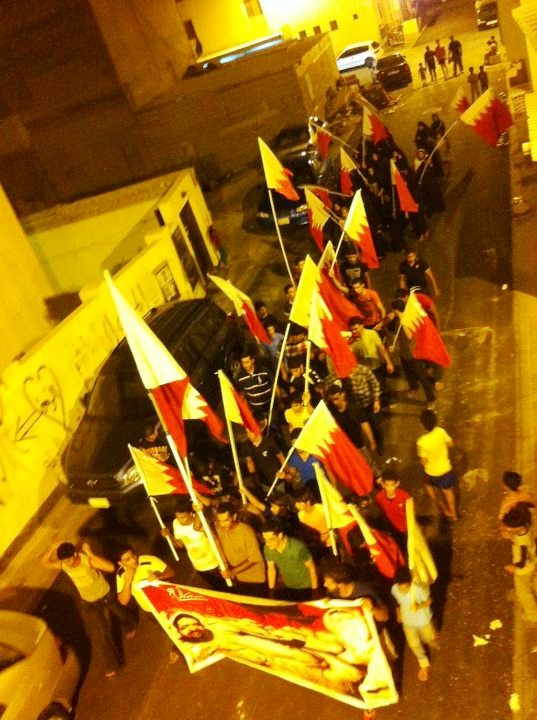 وليس بعيداً عن شارع 9 مارس/ آذار، خرجت في بني جمرة تظاهرة تحشيدية لفعالية "تقرير المصير 12" التي أعلن عنها "الإئتلاف" ليلة الجمعة المقبلة في مناطق "الدير، بلاد القديم وبني جمرة".