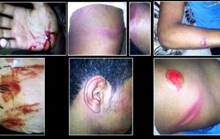 وأضاف أن الضابط وعناصر مكافحة الشعب "أجبروني على الاستلقاء على بطني وقاموا بضربي بالهراوات مع التركيز على اسفل ظهري لمدة 20دقيقة"، ورفسني احدهم على أذني ثم اجبرت على الوقوف وحين اشتكيت من عدم الرؤية ضربوني على يديه بالهراوة وقالوا: "الحين تشوف؟". وتابعوا: "أعطوني ماء لأغسل وجهي واتضحت لي الرؤية قليلا، وكانت يدي تنزف فقام اثنان بضربي بالهراوة على موضع النزف وكان شخص ثالث يصور عملية التعذيب كامل بهاتف الضابط".