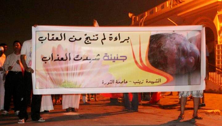 - 2012-09-22شاهدة عيان من انتهاكات المنامة: كانت لحظة موت شاهدت فيها أطياف الرضيعة ساجدة، الطفل ياسين، المسن لطف الله.