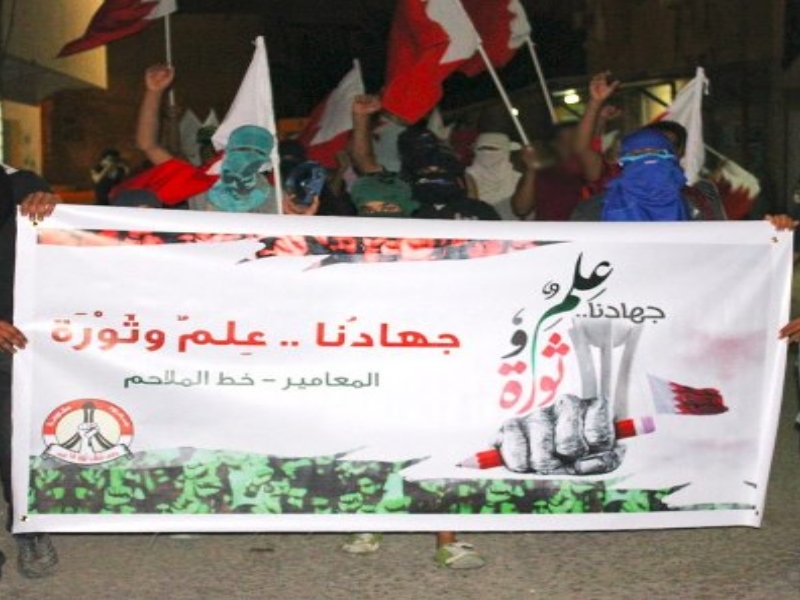 وتحت شعار "ثورتنا علم وجهاد و البراءة الاسيرة" خصص "ائتلاف شباب ثورة 14 فبراير" الإثنين للفعاليات التضامنية مع الطلبة المعتقلين المحرومين من حقهم في التعليم مع بدء العام الدراسي، حيث أغلق المتظاهرون لليوم الثالث على التوالي "شارع التحرير" بالاطارات المشتعلة بالقرب من مقر جمعية "الوفاق".