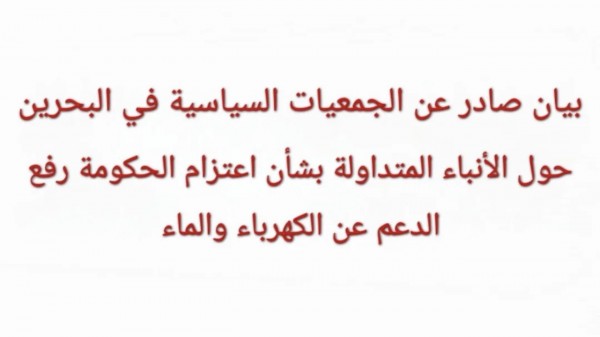 مرآة البحرين: حذّرت جمعيات سياسية في البحرين من تداعيات الأنباء المتداولة بشأن اعتزام الحكومة رفع أو تقليص الدعم عن خدمات الكهرباء والماء، مؤكدة أن هذه الخطوة تمسّ الأمن المعيشي للمواطنين وتزيد الأعباء على ذوي الدخل المحدود والمتوسط.