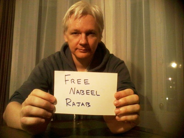 مرآة البحرين: طالب صاحب «ويكيليكس» جوليان أسانج الحكومة البحرينية بإطلاق سراح الحقوقي نبيل رجب الذي حكم عليه في محكمة بحرينية بالسجن سنتين بعد نشره تغريدات في «تويتر». ونشر صورة له على شبكات التواصل الاجتماعي، وهو يحمل لافتة كتب عليها «الحرية إلى نبيل رجب».