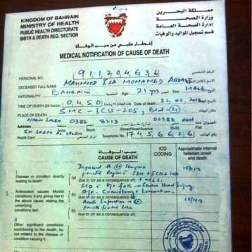 وقالت الوزارة إن ذوي الشهيد أفادوا أنه عولج في مركز سترة الصحي قبل يوم من إحضاره لمجمع السلمانية الطبي، إلا أنها زعمت أنه بعد التدقيق والبحث في سجلات جميع المراكز الصحية والمستشفيات تبيّن عدم مراجعته أي من المراكز الصحية والمستشفيات التابعة لوزارة الصحة.
