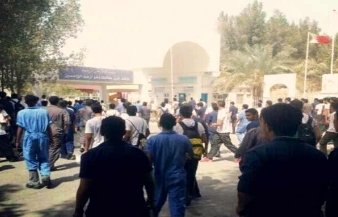 وتابعوا «ما إن وصل الطالب حميدان إلى مبنى الإدارة حتى فوجيء بتقييده من قبل مدنيين واعتقاله». وقال شهود عيان «إن طلاب المدرسة، حال معرفتهم بنبأ اعتقال زميلهم، خرجوا من جميع الصفوف مهرولين، حيث اعتصموا احتجاجاً أمام مبنى الإدارة».
