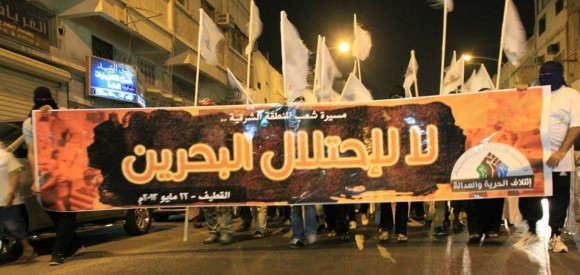 مرآة البحرين: شهدت مدينة القطيف شرقي السعودية مسيرة تحت شعار "لا لاحتلال البحرين"، للمطالبة بخروج الجيش السعودي من البحرين.