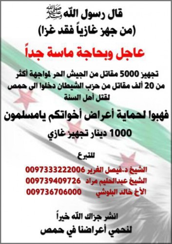 But in the past few weeks, only five Jihadists were killed when fighting with Al-Nusra Front (Al-Nusra Front was enlisted on the International List of Terrorism by the Security Council and the United States of America) in attacks against the Syrian Army. One of the Society members, Sheikh Faysal Al-Ghareer, announced that he was able to equip 1530 fighters and send them to Syria by one of the campaigns (Equipping Invaders) under his supervision along with the help of his colleague, the Salafist Member of parliament Abed Al-Halim Murad. The cost of equipping those fighters was estimated at $ 4 million. Moreover, one of the rebel factions fighting in Syria admitted to have received anti-aircraft missiles through Bahraini sponsors.