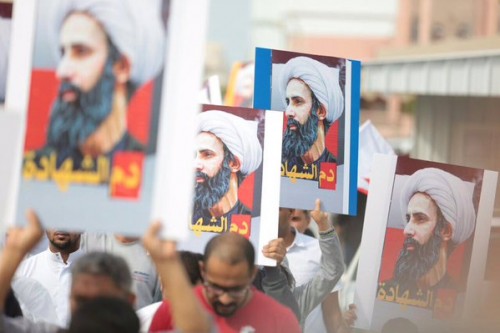 Demonstrators, after friday prayers, held photos of Sheikh Al-Nimr and chanted slogans denouncing the crime, stressing, at the same time, on their demand to put an end to the Al Khalifa family's monopoly over power.