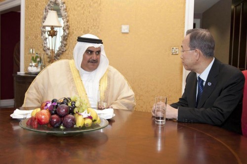 The news report entitled "In phone call, Ban discusses challenges to regional peace and security with Foreign Minister of Bahrain," said that the United Nations Secretary-General urged the Foreign Minister and the Government in Bahrain to take more provisions to promote the peaceful political dialogue between all Bahrainis.