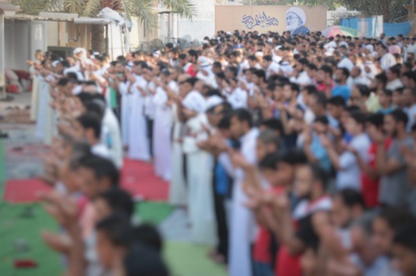 Bahrain Mirror: Hundreds of citizens performed the Eid Al-Adha prayer on Monday (September 12, 2016) in front of the spiritual leader Sheikh Isa Qassim' house.