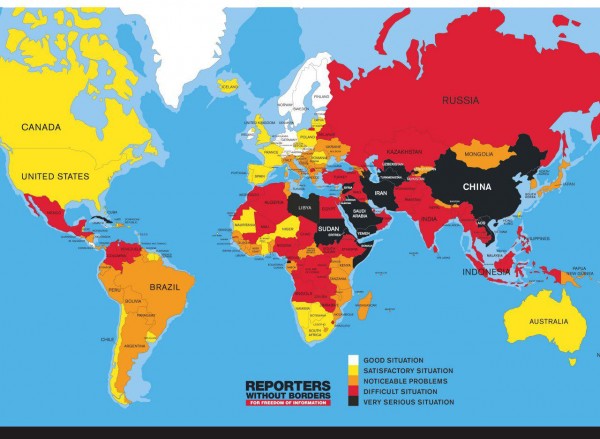 On this level, RSF clarified, "The other two countries [Egypt and Bahrain] that have entered the Index's black zone are both from the region with the worst score - the Middle East. Many journalists have been imprisoned in both countries- 24 in Egypt and 14 in Bahrain - and they both detain their journalists for very long periods of time."