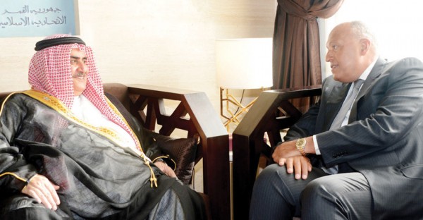 Bahrain Mirror: Bahrain's Foreign Minister Khalid bin Ahmed bin Mohammed Al-Khalifa met his Egyptian counterpart, Sameh Shoukry, on the sidelines of the Ministerial-level meeting of the Arab League Council. The two ministers reviewed the meeting to be hosted by the Kingdom of Bahrain next Sunday for the Ministers of Foreign Affairs of the Kingdom of Bahrain, Kingdom of Saudi Arabia, the United Arab Emirates and the Arab Republic of Egypt to discuss the developments of crisis with Qatar.