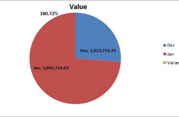 The Customs Affairs said electronic payment transactions amounted to BD 2,845,714.69 in January 2018, an increase of 181% compared to December of last year.