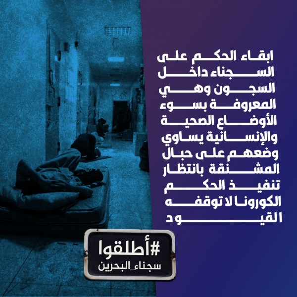 Families of prisoners in Bahrain, in a campaign they launched via Twitter, considered that not releasing their loved ones is a collective death penalty in Jaw Prison, which holds 3,000 political prisoners, with some cases having serious diseases amid bad health conditions. These extreme stances of the authorities come despite the UN demand to countries to release prisoners to protect their lives. If any prisoner becomes infected with this virus, the situation would turn into an unavertable catastrophe.