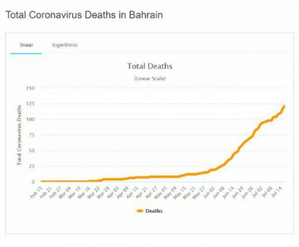 85% of Coronavirus deaths in Bahrain (104 deaths) occurred during only a month and a half