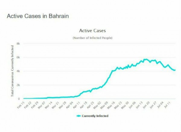 Total coronavirus cases in Bahrain as of July 14, 2020