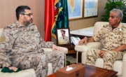 BDF Chief-of-Staff Dhiyab bin Saqr Al Nuaimi received Peninsula Shield Joint Forces (PSJF) Commander Waleed bin Falih Al-Zhahery.