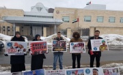 Protestors staged protests in front of the Emirati embassy building in the Canadian capital Ottawa, demanding the withdrawal of Gulf forces from Bahrain, marking the eighth anniversary of the raid of the Emirate and Saudi forces to Bahrain.