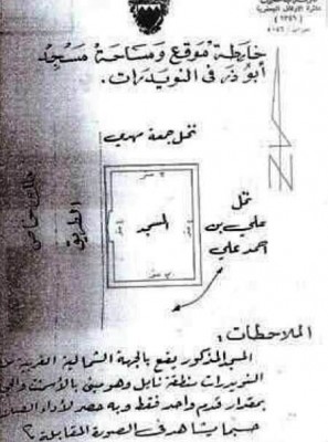 وأوضح المجلس، في بيان، أن الوثيقة "تبيّن أن المسجد يقع في الجهة الشمالية ـ الغربية من النويدرات بمنطقة نايل تحديدا، وهو مبنيّ بالإسمنت والحجارة بمقدار قدم واحد وبه حصر لأداء الصلاة"، لافتا إلى أن "أطلال المسجد كانت باقية وواضحة للعيان قبل إعادة تجديده في السَّنوات الأخيرة".
