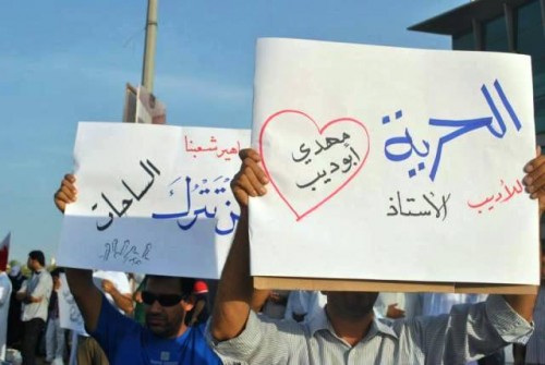 وأضاف "لسوء الحظ، فإن قضية الأستاذ "أبو ديب" هي واحدة من مجموع قضايا الحكومة البحرينية في حملتها على إسكات الآراء المعارضة ومطالب شعبها المتمثلة بحقوق الإنسان والديمقراطية"، مؤكدا أن عدد كبير من الناشطين السلميين فقدوا أرواحهم، أو سجنوا فقط بسبب ممارستهم لحقوقهم المشروعة كحرية التعبير عن الرأي والتجمع، وتحديدًّا منذ عام 2011".