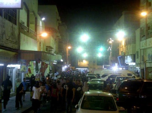 في الوقت ذاته انطلقت تظاهرة حاشدة وسط العاصمة المنامة لليوم الثاني على التوالي، رغم صدور مراسيم ملكية بحظر التظاهر كليا في العاصمة، وعمت المسيرات والتظاهرات مختلف أرجاء البحرين، فيما انطلقت في منطقة "مقابة" بشارع البديع مسيرة تحت عنوان "شموع العيد" تقدمها آباء الشهداء.