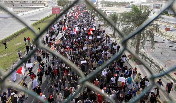 منذ آذار / مارس الماضي والإمارة البحرينية الصغيرة في الخليج العربي (في النص الأصلي الخليج الفارسي) تتصدر قائمة المناهضين للربيع العربي، شانةً حملتها المتواصلة للقضاء على أنصار الإصلاحات الديمقراطية المحلية، معتكزة على مساعدة قوات جارتها المملكة العربية السعودية. هذا القمع الموجه نحو الذات والمشوب بالعداء الطائفي من النخبة السنية الحاكمة تجاه الغالبية الشيعية من السكان، يشكل مشكلة رئيسية بالنسبة للولايات المتحدة بسبب قدرته على تأجيج الصراع الطائفي في المنطقة، ولأن البحرين حليفة الولايات المتحدة التي تستضيف الاسطول الأمريكي الخامس.